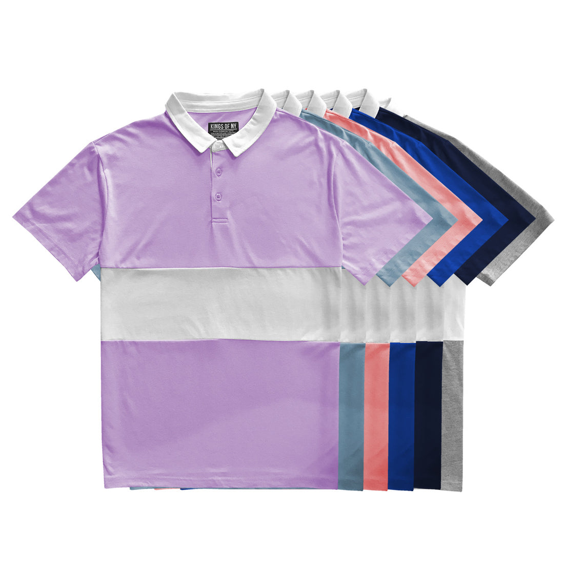 We just added 6 new rugby shirts to our classic single stripe short sleeve style. Our new colors include lavender, smoke blue, light pink, navy blue, royal blue and a heather grey. These lightweight rugby shirts feature our single stripe and matching white collar. Be sure to hit us up on Instagram @kingsofny and let us know any other colors you want to see drop!