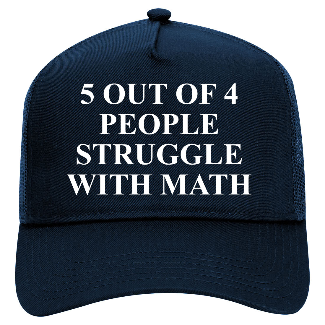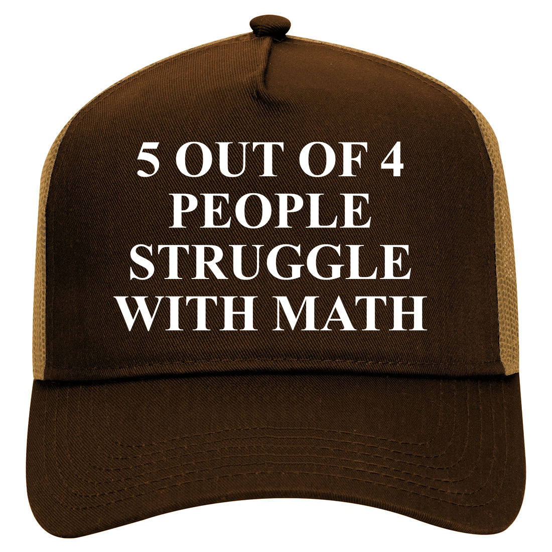 Shop our 5 Of 4 People Struggle With Math Funny Teacher Retro Adult 5 Panel Mesh Trucker Hat. This classic adult mesh trucker cap features a printed graphic on front with a curved brim for a retro but premium look and fit.