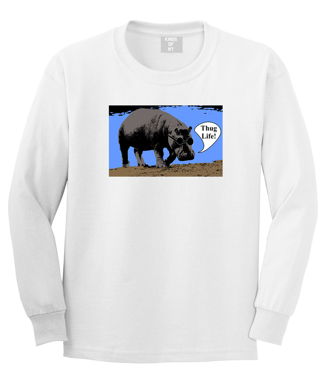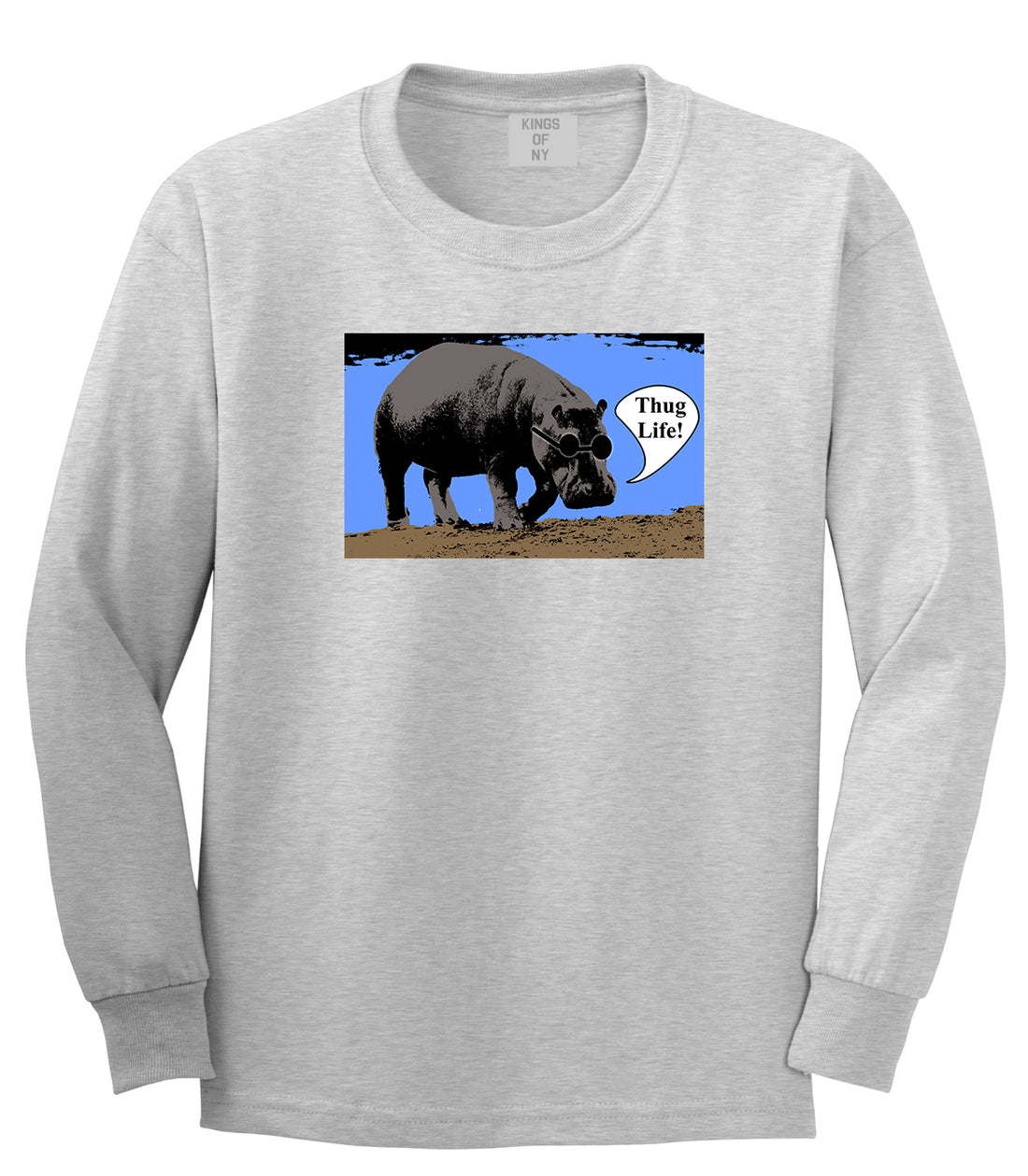 Cool Hippo Thug Life Funny Mens Long Sleeve T-Shirt by Kings Of NY. This Long Sleeve T-Shirt is made of 100% cotton. Grey is 90% cotton and 10% poly. All our tees are professionally printed in house and all orders will ship on the next business day after purchase.