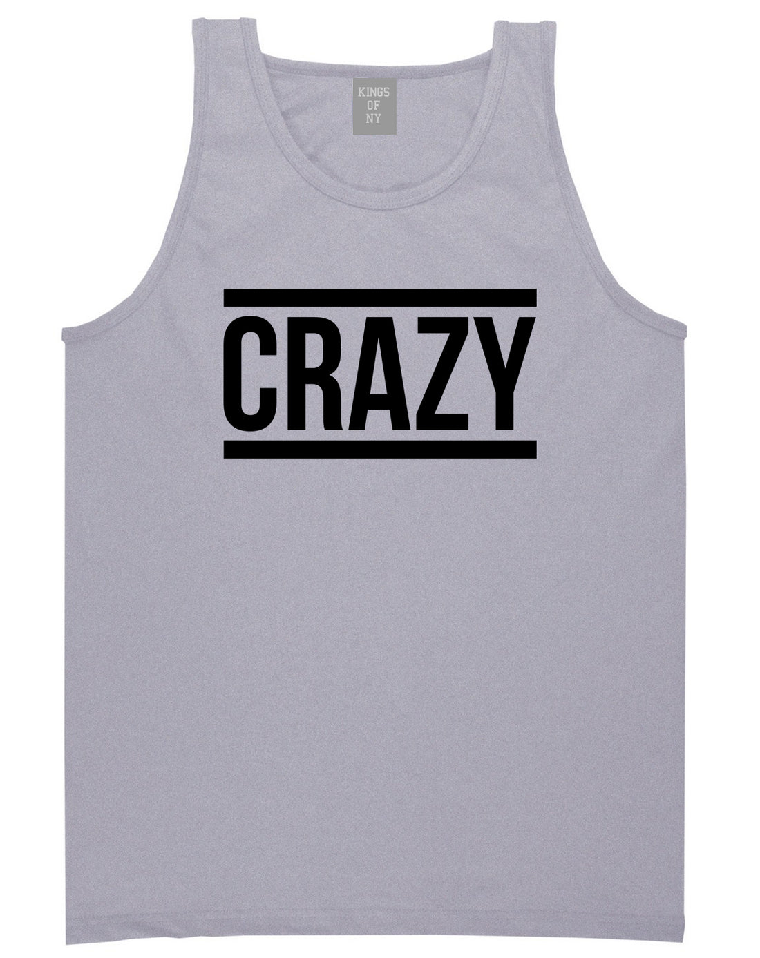 Crazy Mens Tank Top Shirt by Kings Of NY. This tank top is made from 100% cotton. Grey is 90% cotton and 10% poly.