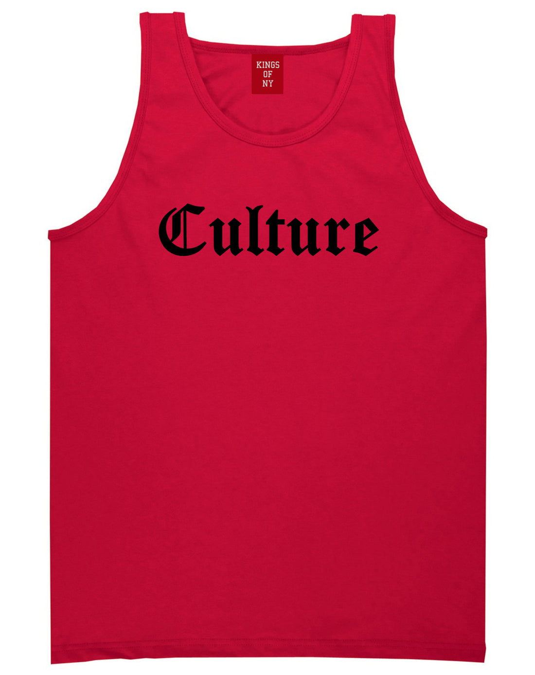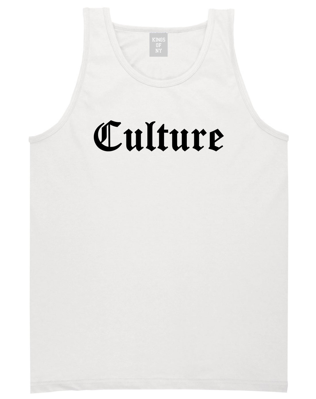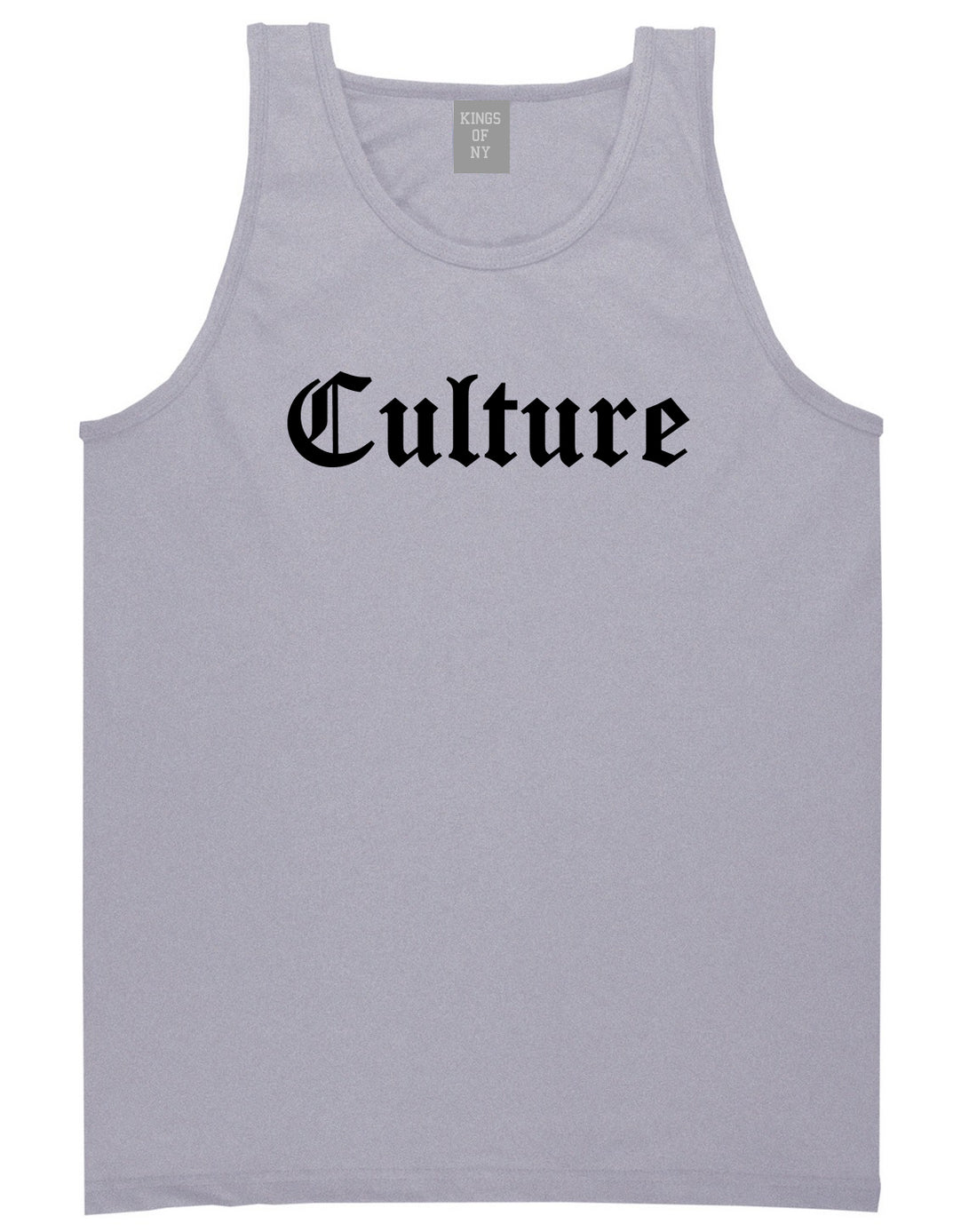 Culture Gothic Font Mens Tank Top Shirt by Kings Of NY. This tank top is made from 100% cotton. Grey is 90% cotton and 10% poly.