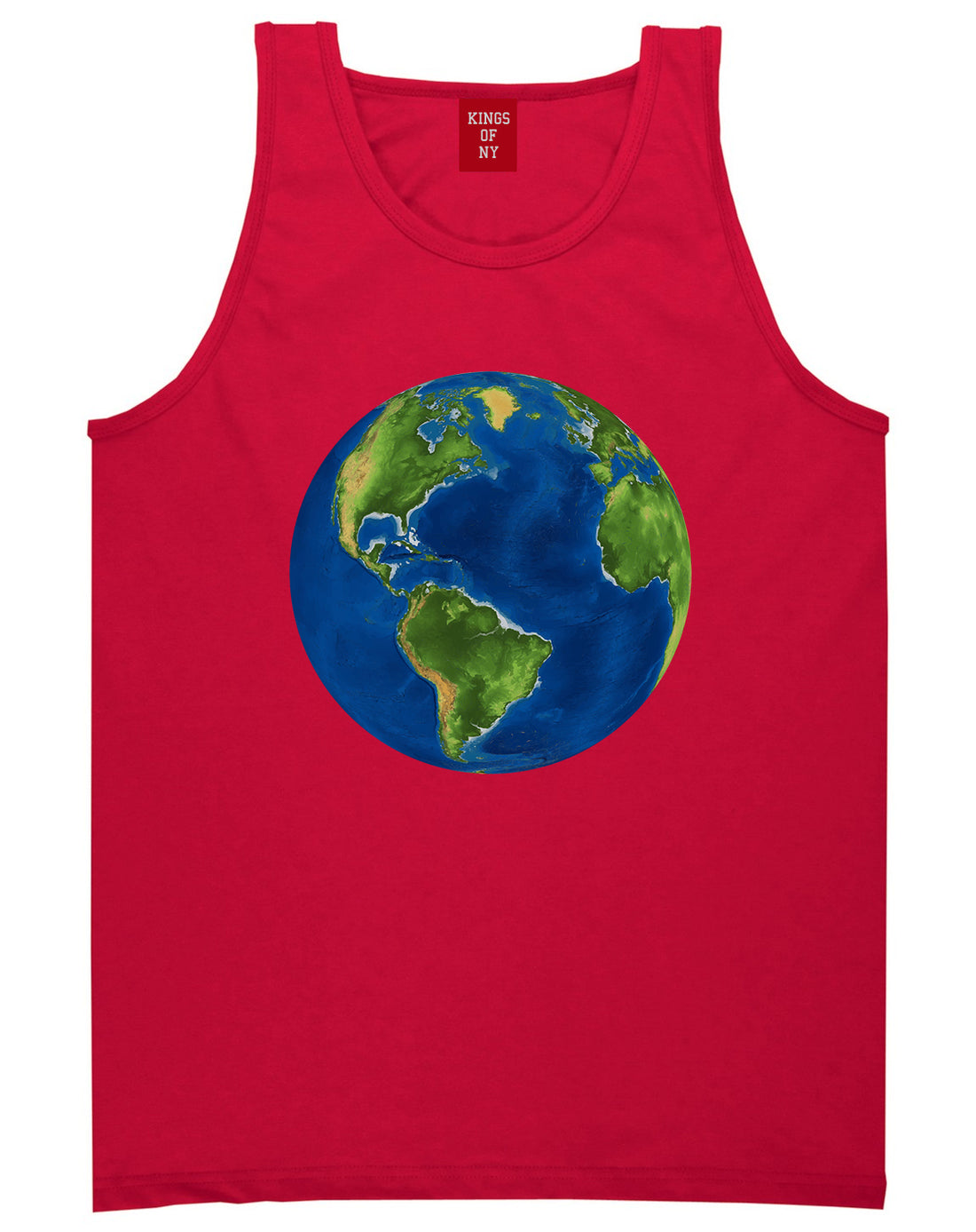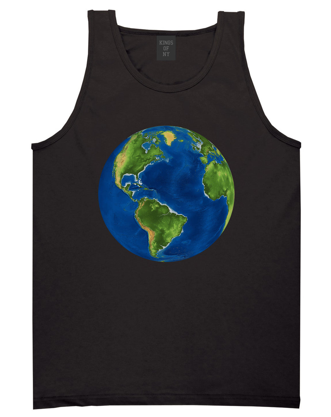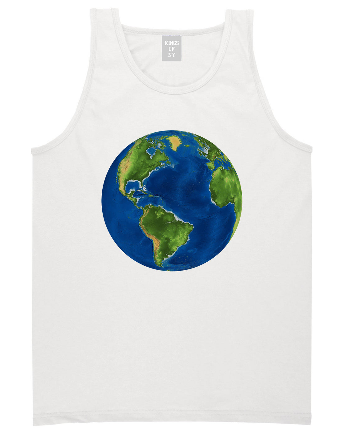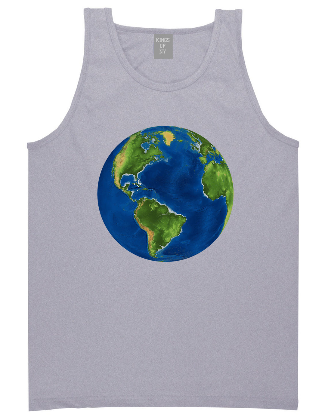 Earth Globe Mens Tank Top Shirt by Kings Of NY. This shirt is made 100% cotton and grey is 90% cotton and 10% poly.