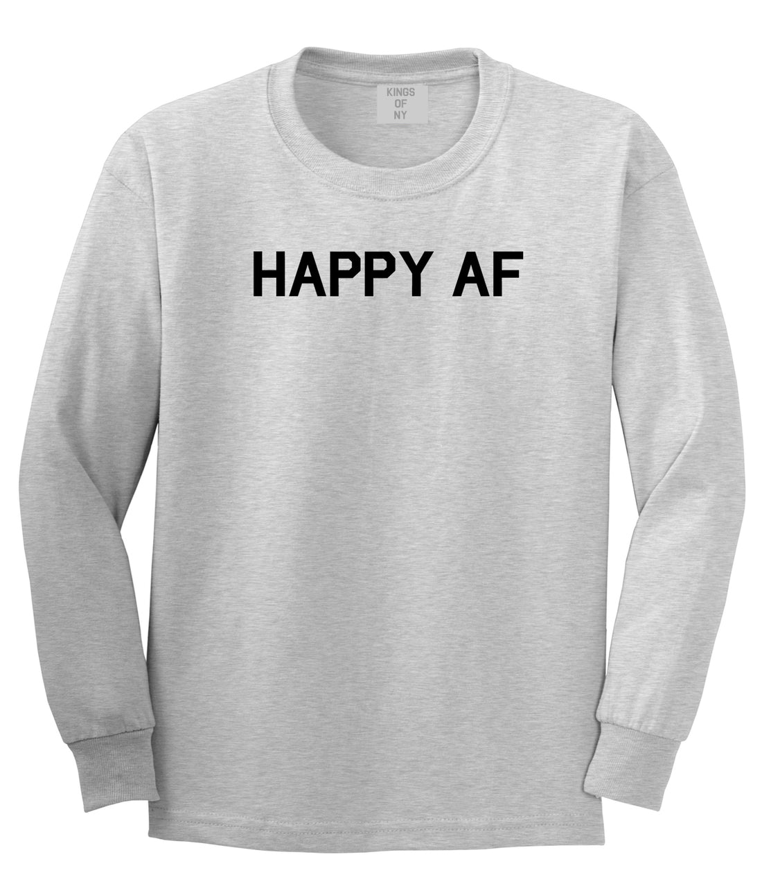 Happy AF Mens Long Sleeve T-Shirt by Kings Of NY. This t-shirt is made 100% cotton and grey is 90% cotton and 10% poly.
