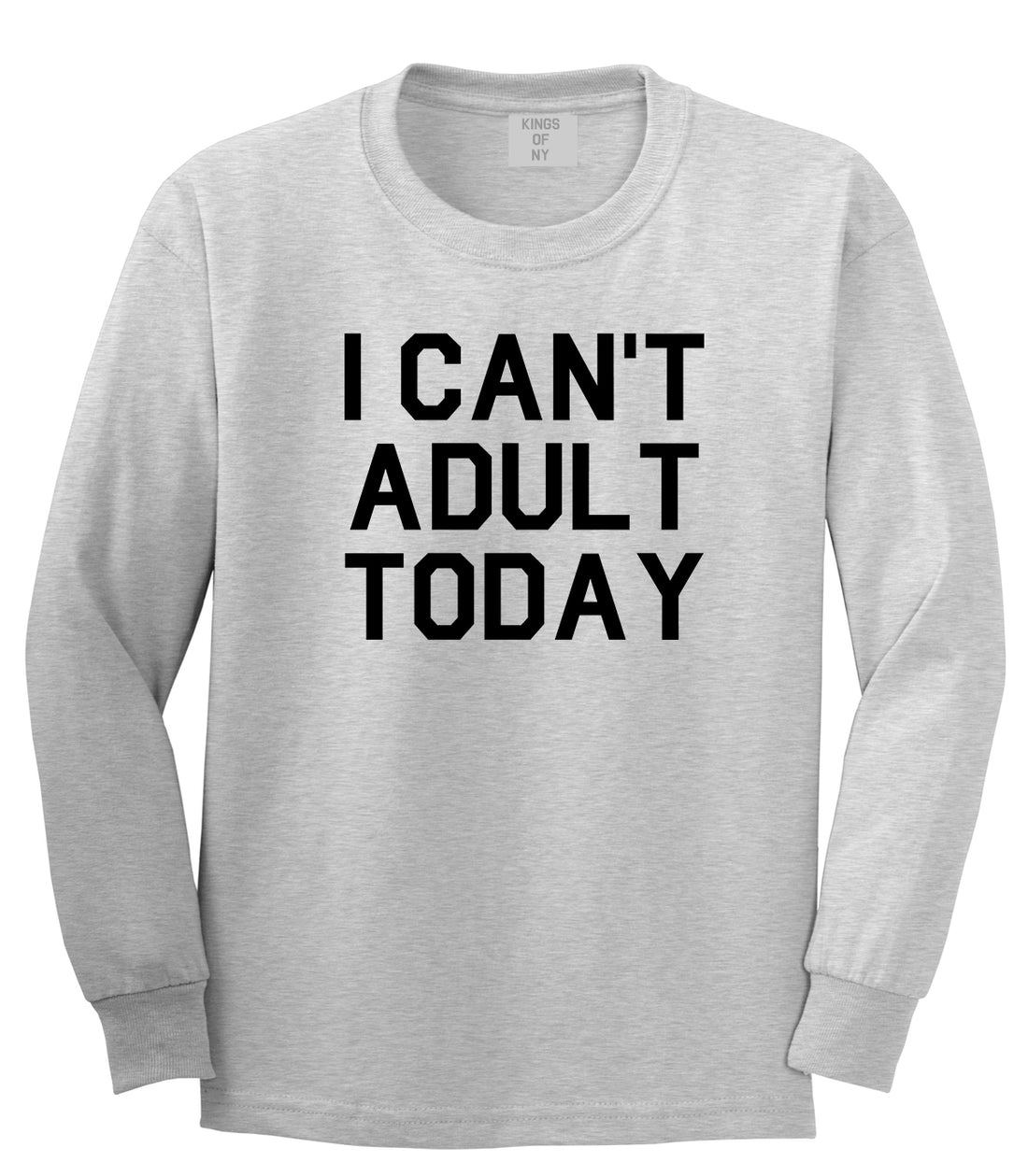 I Cant Adult Today Mens Long Sleeve T-Shirt by Kings Of NY. This Long Sleeve T-Shirt is made of 100% cotton. Grey is 90% cotton and 10% poly. All our tees are professionally printed in house and all orders will ship on the next business day after purchase.