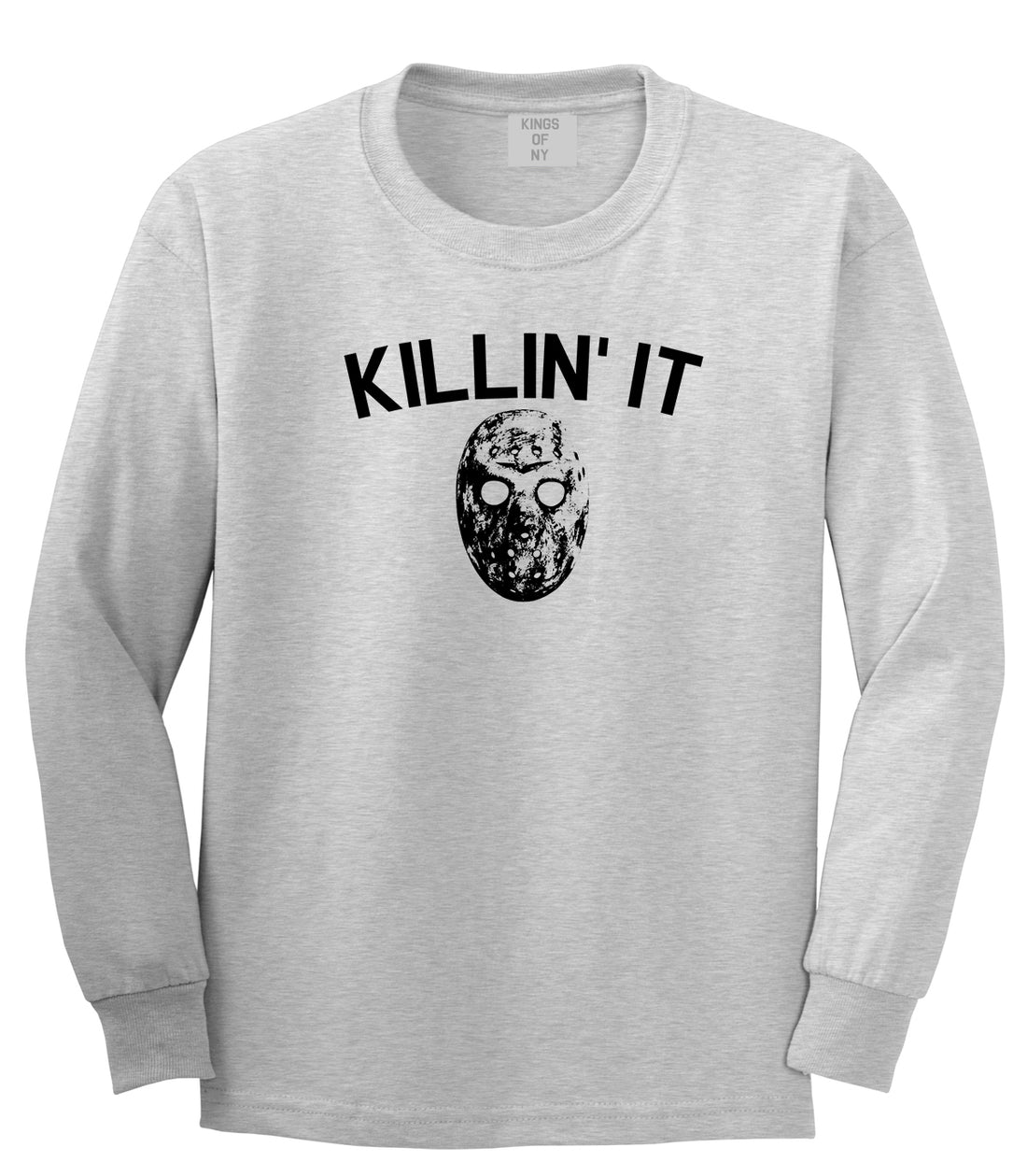 Killin It Jason Mask Mens Long Sleeve T-Shirt by Kings Of NY. This Long Sleeve T-Shirt is made of 100% cotton. Grey is 90% cotton and 10% poly. All our tees are professionally printed in house and all orders will ship on the next business day after purchase.