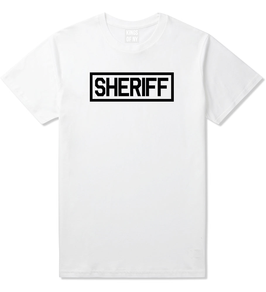 Sheriff County Police Mens T-Shirt by Kings Of NY. This t-shirt is made 100% cotton and grey is 90% cotton and 10% poly.