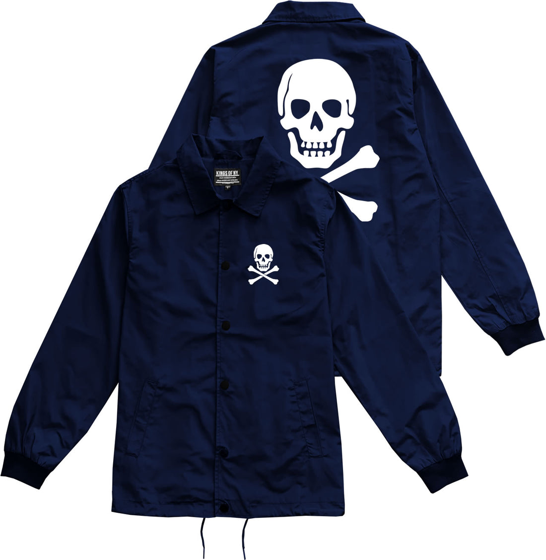 The Skull and Crossbones Men's Coaches Jacket features a subtle yet gothic front and back skull graphic on a classic coach jacket silhouette. Built for everyday wear, it’s lightweight, durable, and effortlessly cool.